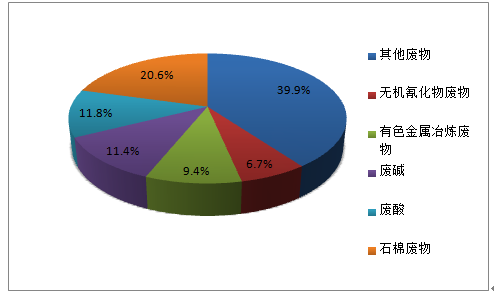 2)工业危险废物主要来自化学原料与化学制品制造、非金属矿选业、有色金属冶炼加工、造纸等行业。3)工业危险废物种类主要为石棉废物、废酸废碱、金属冶炼废物、无机氰化物废物等。