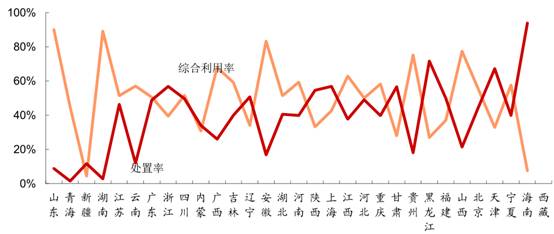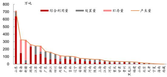 2014 年,危险废物产生量前五的省市为山东、青海、新疆、湖南、江苏,五省的危废产生量合计占全国产生量的比例达 51.2%,集中度高;其中青海、新疆、云南受发展条件限制,当前有大量危废转为了储存量,市场丞待开发;而处理处置量前五的省市为山东、湖南、江苏、广东、云南,C5 集中度也高达 50.7%。